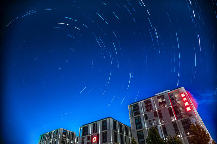 作品介绍:一张雨虹园区上空环绕着北极星的 ...