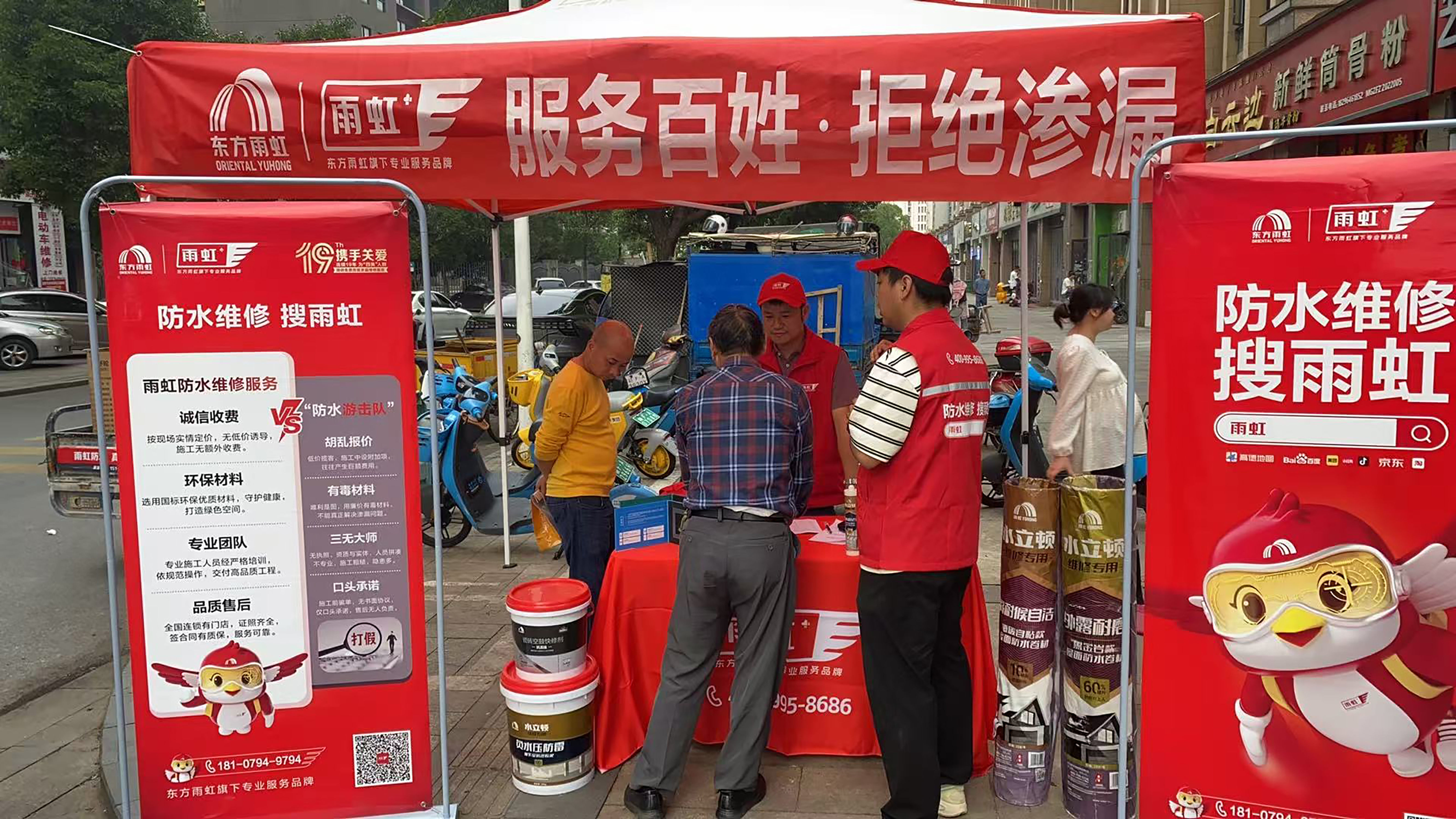 作品介绍:雨虹服务为当地居民提供免费勘察服务 现场居民络绎不绝 为大家科普防水知识