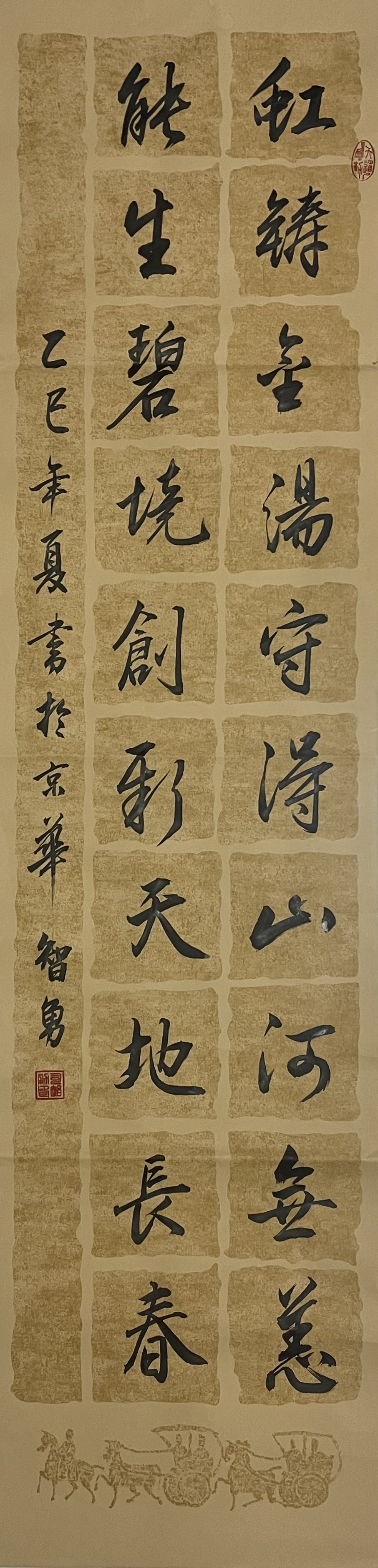 作品介绍:虹铸金汤守得山河无恙,能生碧境创新天地长春。