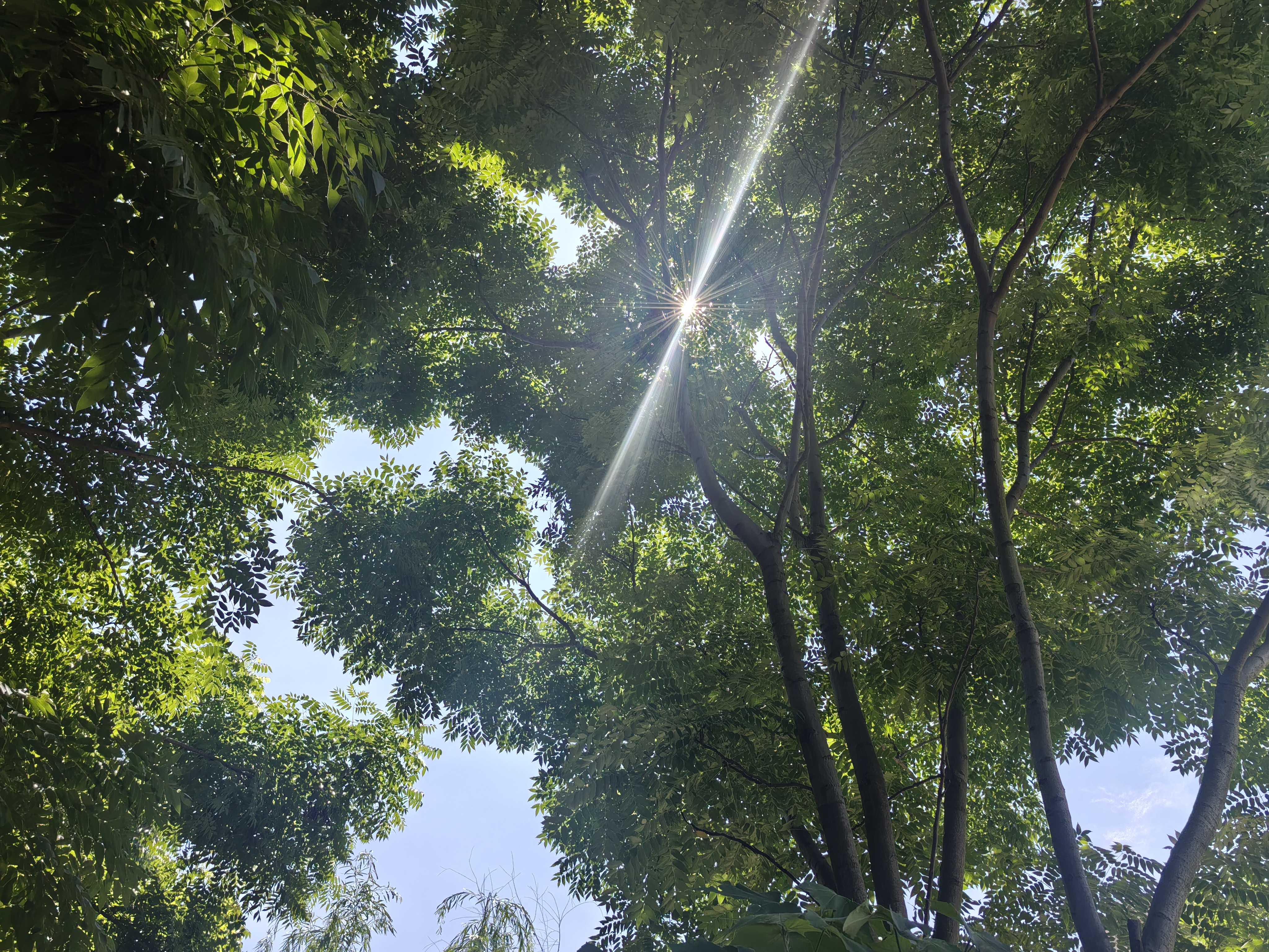 主题阐释:公园内两位蓝衣老人手挽手走过正在洒水的绿化带,在阳光的照映下老人被彩虹包围,走向幸福的生活