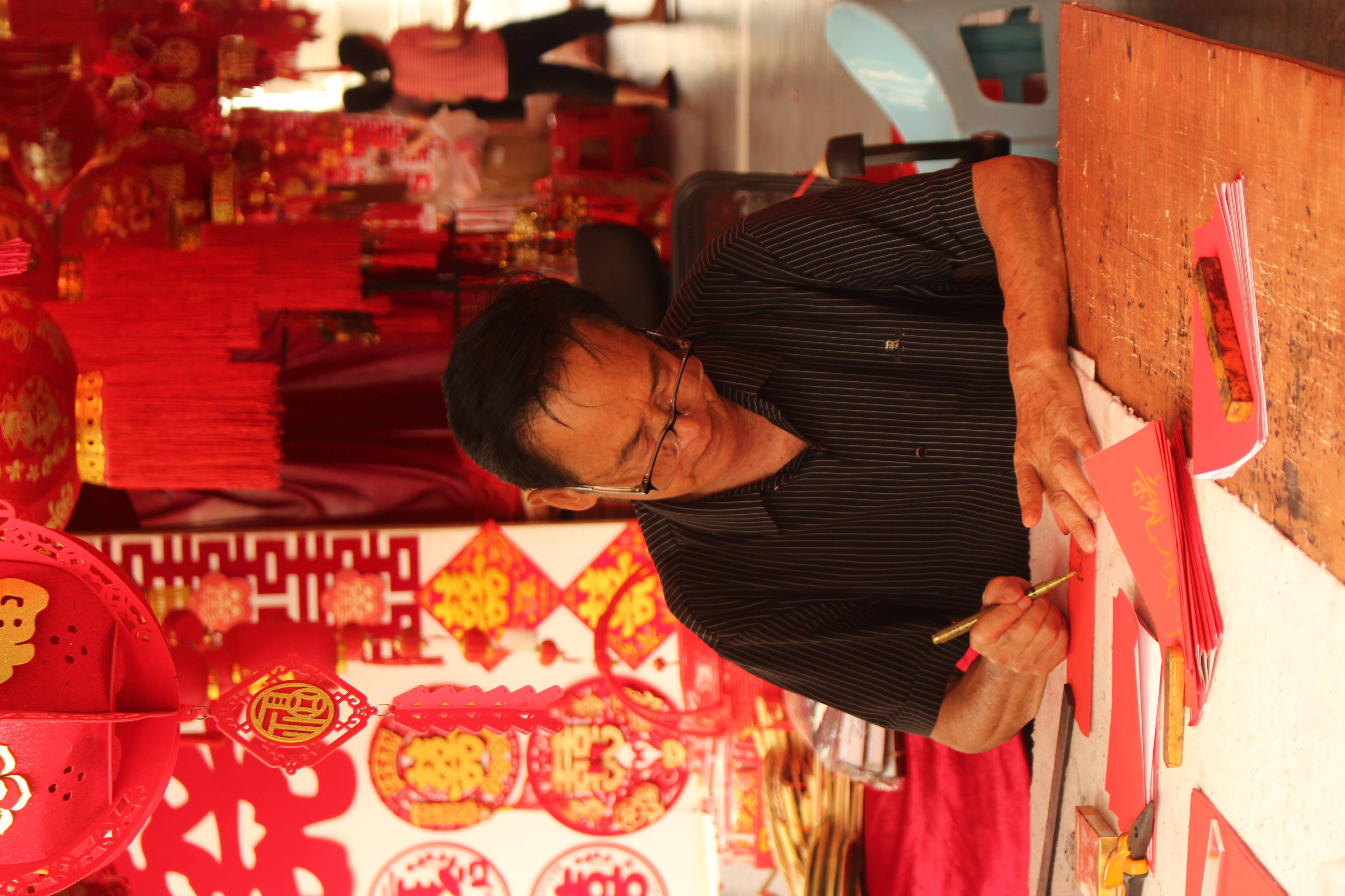 主题阐释:在江门三十三墟街的一隅,手艺人执笔于红笺,在纸墨之间勾勒传统的模样。斑驳的木桌、泛红的笺纸,与周围的民俗装饰相映成趣,每一笔落下都是手艺的传承,每一处细节都藏着墟街的人文温度。三十三墟街的烟火气里,这份专注的匠心如时光的针脚,将岭南老街的文化记忆,缝进了红纸金墨的字符之中,留存下传统手艺在市井间的鲜活印记。