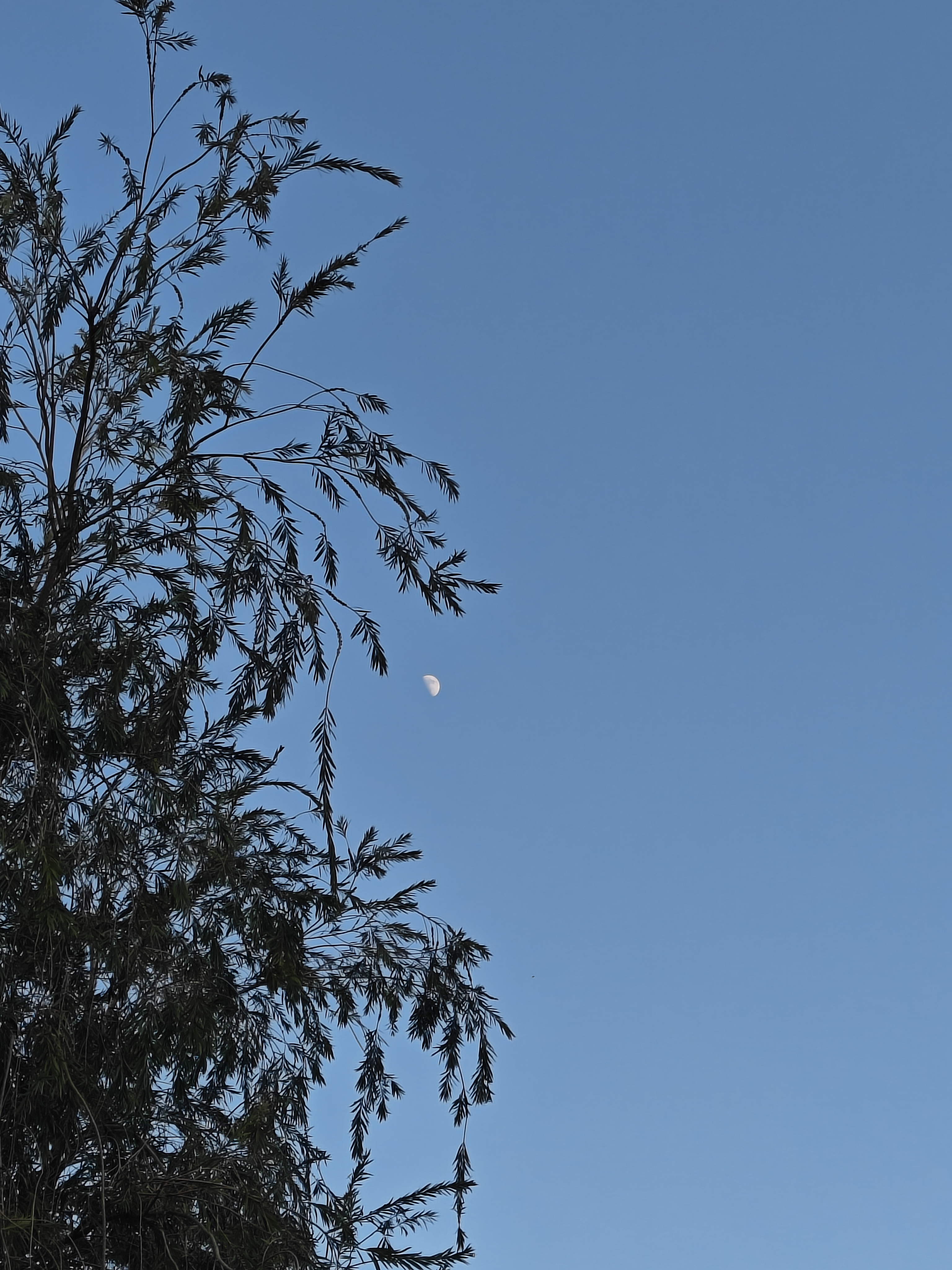 该作品拍自于学校,当时是日月共天,月亮半圆勾起思念之情。