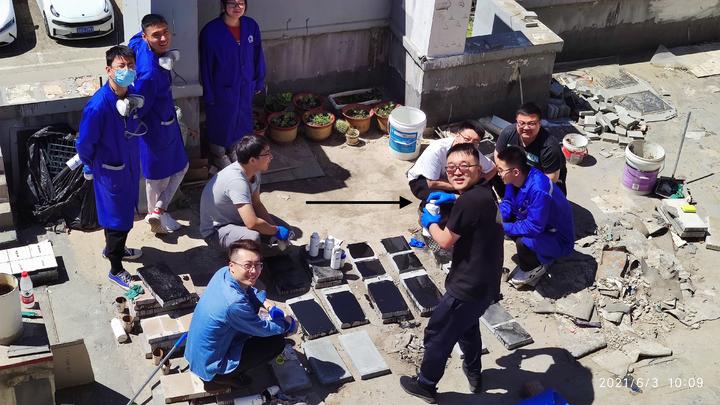 2021年炽热的阳光下,九名技术人员正围在一片铺满聚氨酯防水涂料的测试板周围,专注记录着涂层在高温环境下的成膜变化。6月的骄阳将空气炙烤得微微扭曲,却丝毫没有影响团队的专注力——他们如同精密仪器上的齿轮,各司其职却又紧密联动。通过测试在不同基材上、不同温度下、不同曝晒时间等条件下聚氨酯涂料的成膜效果,根据应用性能不断地调整配方、优化工艺,力求为客户提供更优质的产品。每位技术人员都亲自上手涂刷,分享自己的体验。照片定格了一群技术人员同时转向镜头、绽放笑容的瞬间。他们手中尚未放下的检测仪器和记录板——有人还握着测厚仪,有人正将钢笔夹进写满数据的记录本,而站在后排的几位工程师正认真观察操作人员的实验操作。尽管姿态轻松,细节却透露着专业素养。显然是在摄影师招呼前,他们正全神贯注于某项关键测试。尤其令人会心的是,站在中央的主承担带头对着镜头笑,说明与团队间自然流露的融洽相得益彰。背景中,贴满便签的工艺流程图和摆放有序的样品架,无声诉说着这个团队在欢笑背后共同攻克的技术难关。此刻那些扬起的面庞上,既有完成阶段性工作的喜悦,更洋溢着因彼此信任而生的温暖光彩——这或许就是理想工作状态的最佳注解:用专业铸造精品,以同心成就快乐。
