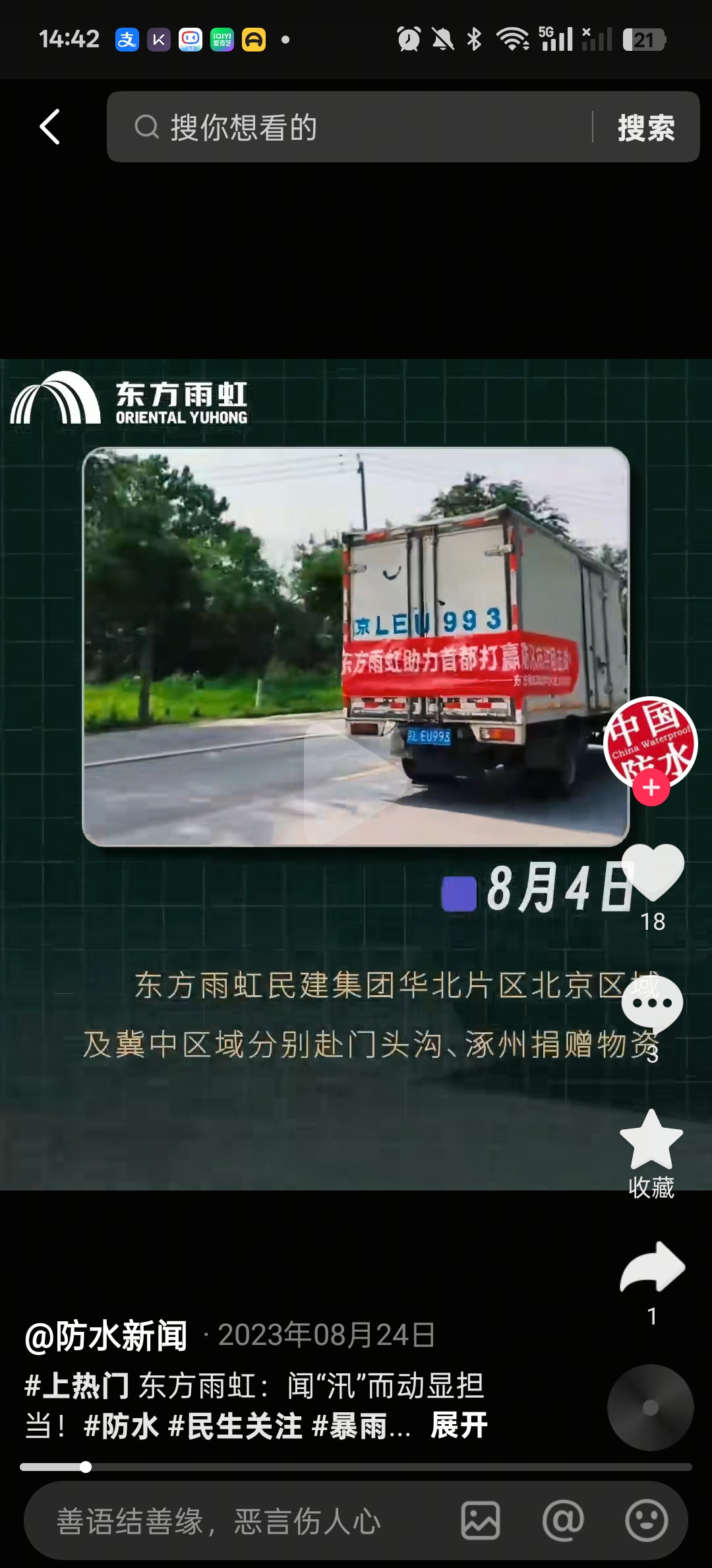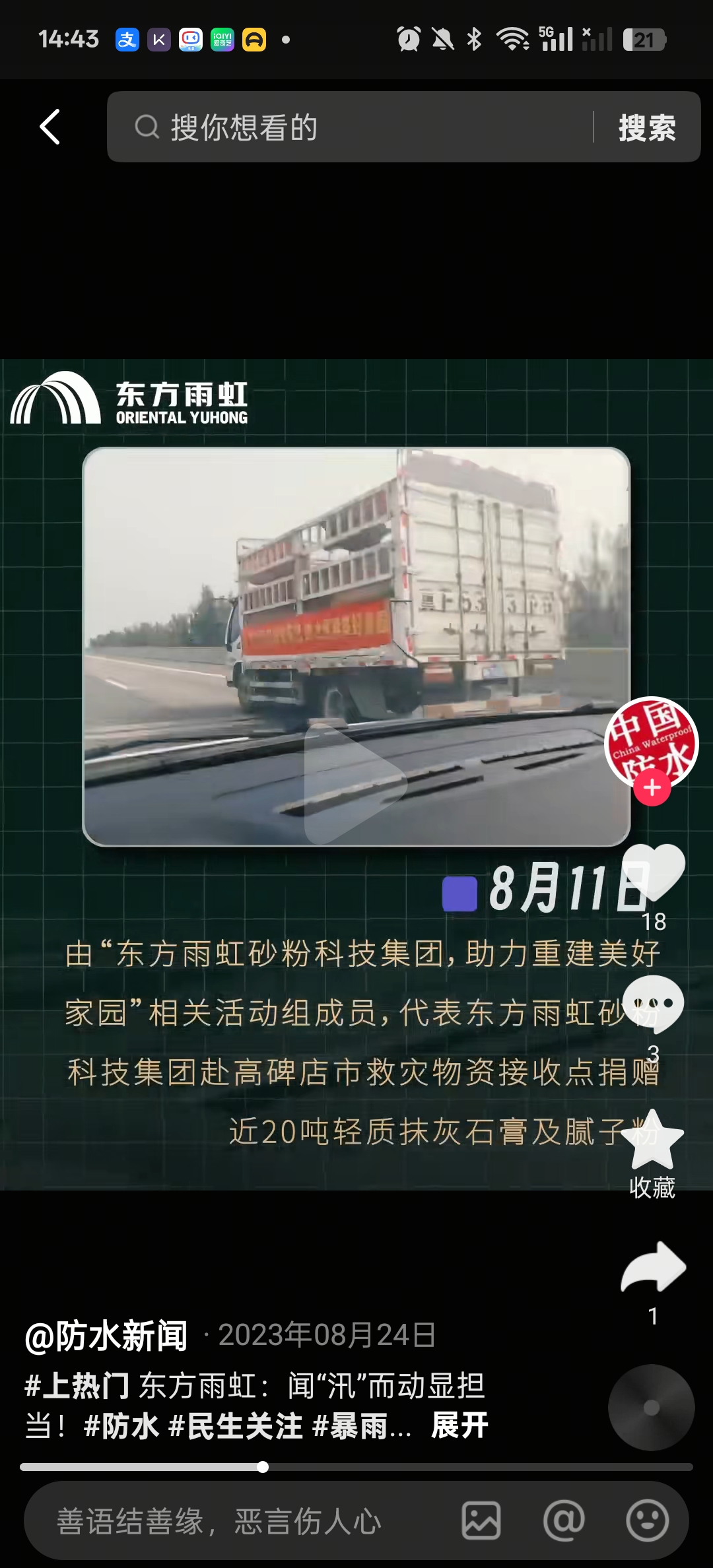 2023年7月31日深夜,我攥着手机站在东方雨虹总部酒店公寓的窗前,涿州老家的实时灾情地图在屏幕上刺目地红着“刁窝镇水位超警戒线2米”“物探局小区全面断网”。看着窗外的雨幕,想起老家那间住了二十年的老房子,眼眶不由得发热。亲戚发来的视频里,浑浊的洪水漫过街道,东方雨虹涿州门店的招牌在激流中摇摇欲坠。而此刻的我,却只能隔着百公里的距离,在岗位上焦急地刷新消息。