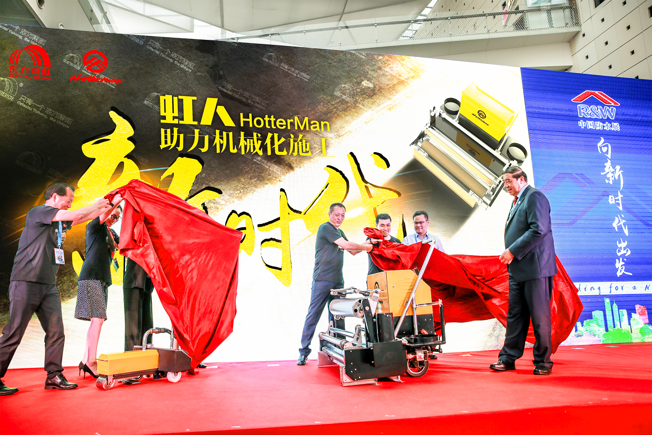 在研发团队的不懈努力下,虹人坦途历经无数次技术调试与性能优化。2018年5月28日,这款凝聚东方雨虹智慧结晶的创新设备,在上海防水展惊艳亮相,瞬间引发防水行业的广泛关注。彼时,智能机械化施工已成为行业发展的必然趋势,作为防水行业的领军企业,东方雨虹始终肩负着引领行业进步的重任。虹人坦途的诞生,不仅为国内外防水工程建设提供了高品质、完备的系统解决方案,更标志着行业向智能化、机械化迈出了坚实的一步。