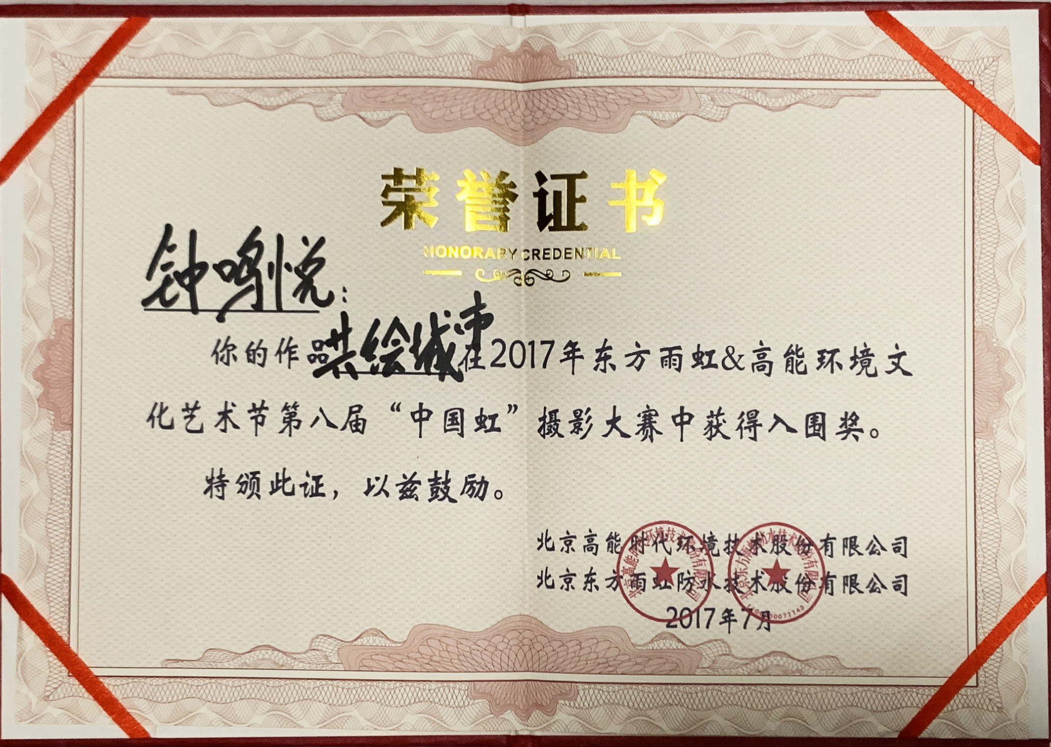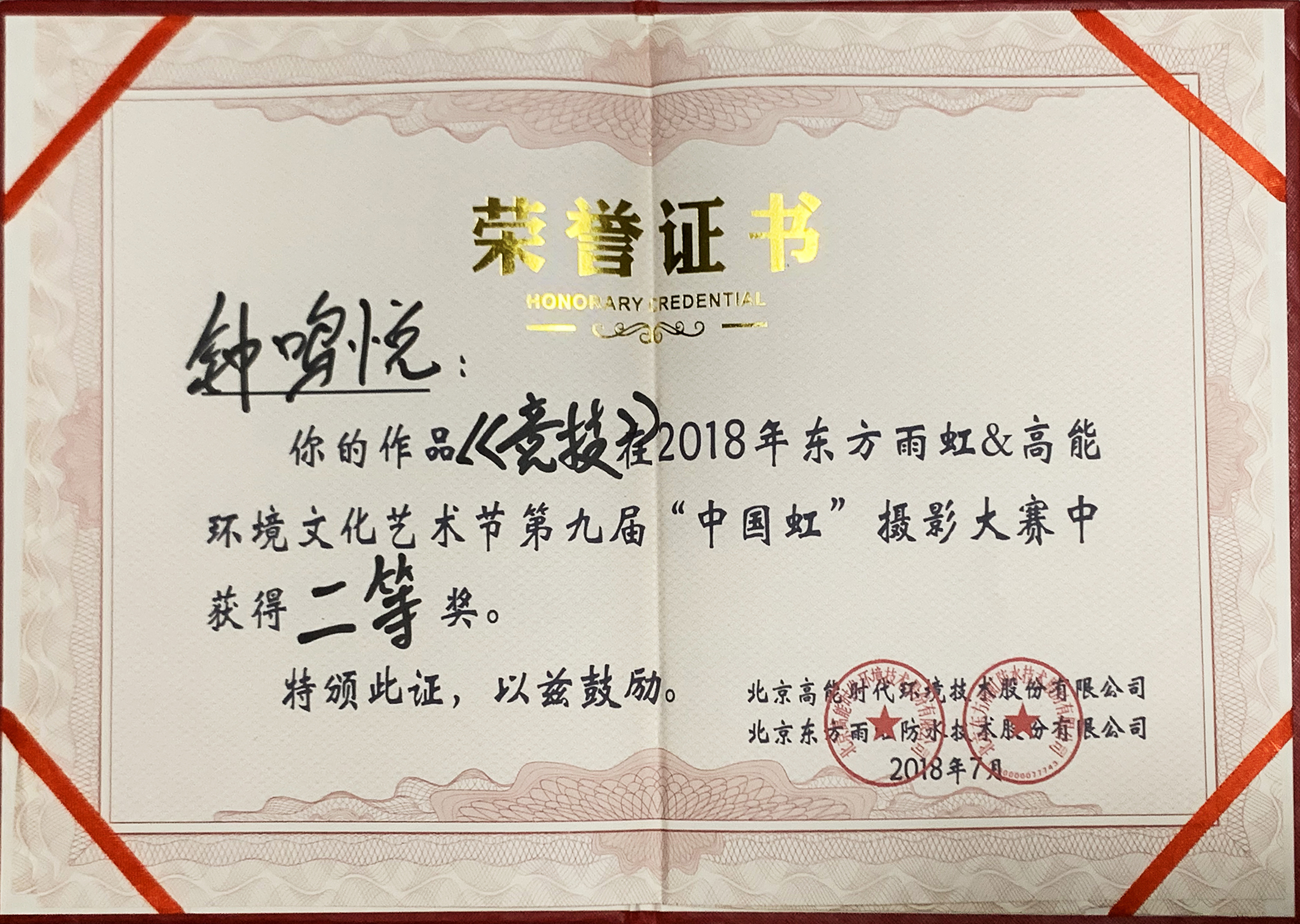 作品编号:8姓名:钟鸣悦工号:118212所属代表队:工建集团代表队作品介绍:自2016年起参加东方雨虹文化节赛事,从入围奖、三等奖、二等奖一路进阶,历经七年终摘得摄影现场拍一等奖。在人才济济的雨虹,这份荣誉离不开自己的坚持。记得2023年文化节足球赛,球队轮番竞技,我却在雨中举伞拍摄,只为捕捉精彩瞬间,最终凭借其中一幅作品拿下一等奖。事实证明,成功没有捷径,唯有脚踏实地。