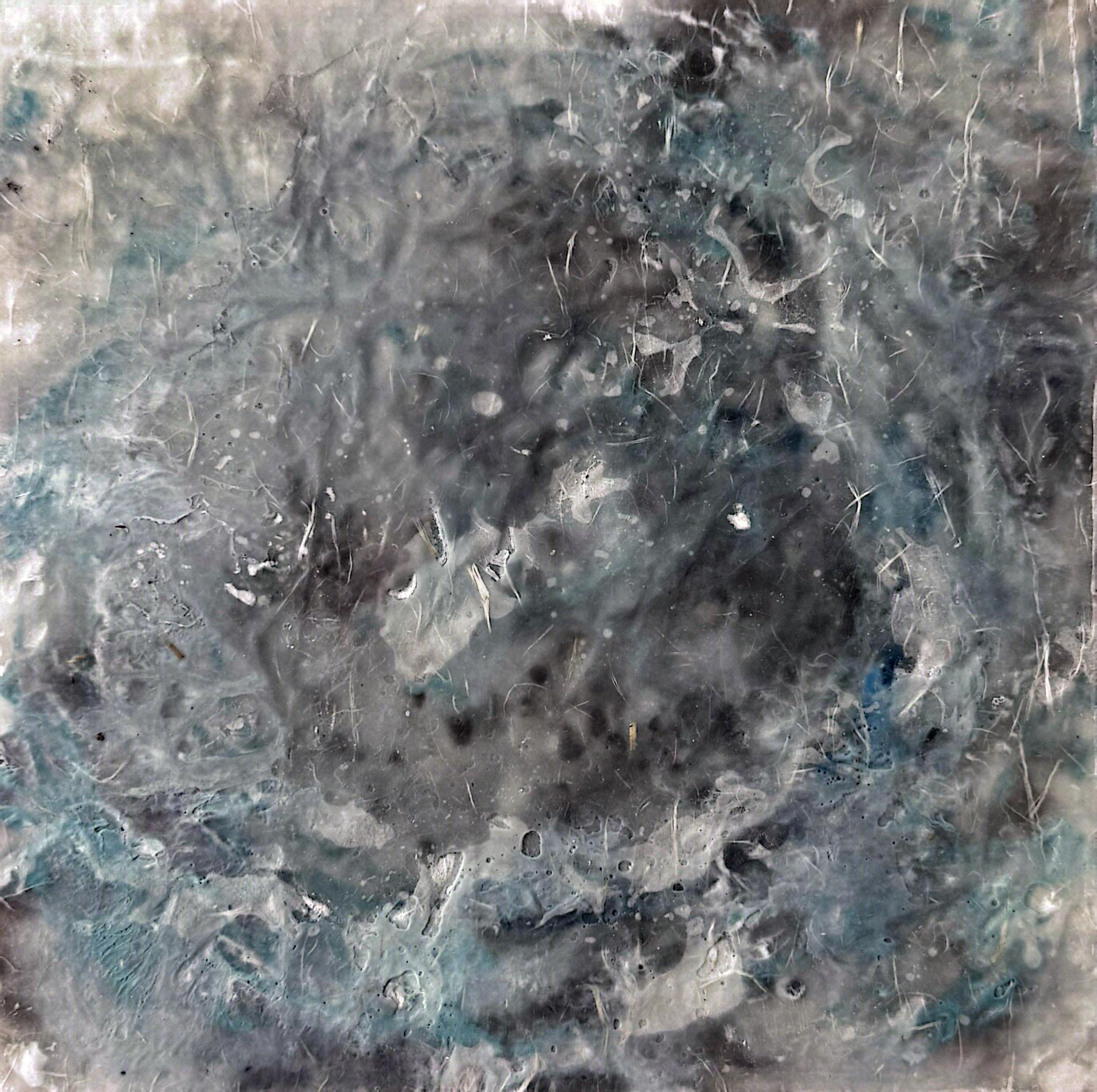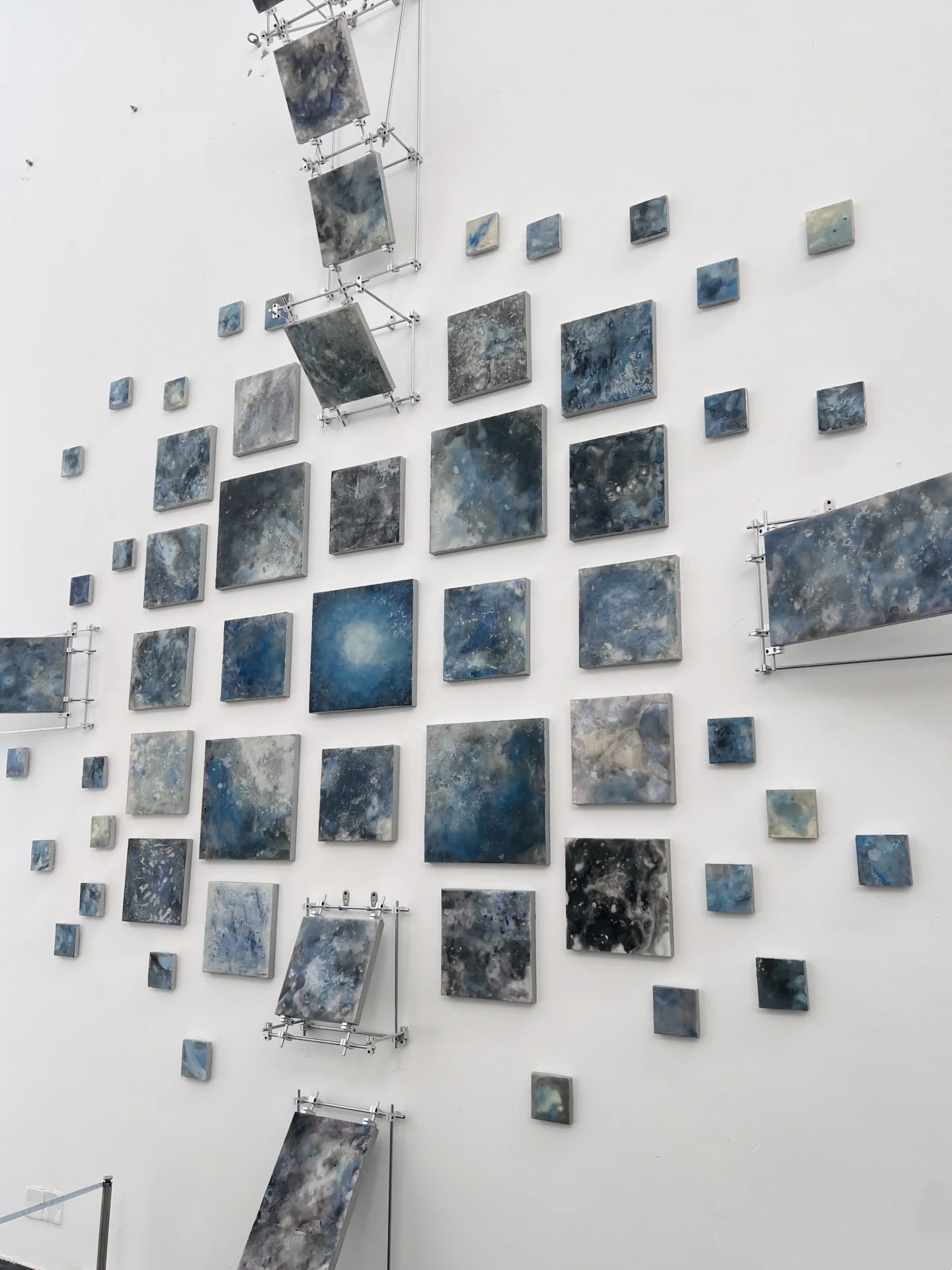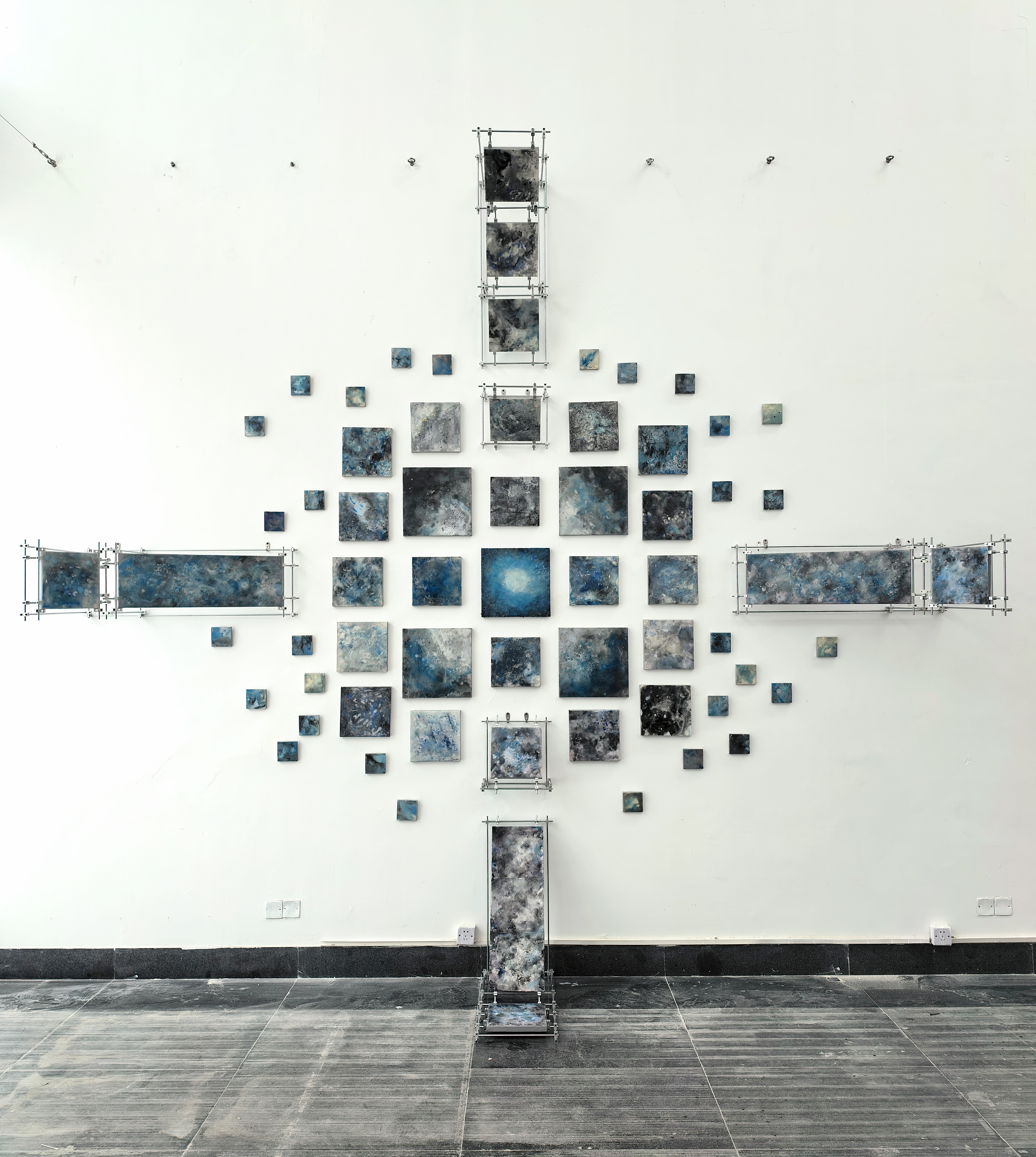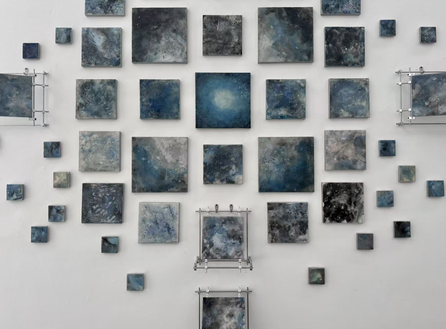 作品设计思路简述 (300字左右): 月亮自古以来便是人类情感与文化的多元载体,它于神话、诗歌、科学以及日常生活中不断衍生出新的意义。本作品以月亮这一跨越文化与时代的意象为核心,借助综合材料绘画探寻情绪、自然与科技之间的全新关联。在粤港澳大湾区这样开放的环境里,潮汐的节奏、月亮的亮光与青年的情绪紧密交织。创作时运用综合材料的模糊特质与叠加效果,结合金属框架营造半立体的三维视觉结构,使画面在展现月亮这一共同记忆的同时,也象征着科技与艺术的相互依存、共同发展。希望让观者在观赏过程中自行解读图像的意义,而非进行直接的叙事性表达——正如湾区文化以多元、包容与碰撞为动力,让每一种创造力都能在其中蓬勃生长。
