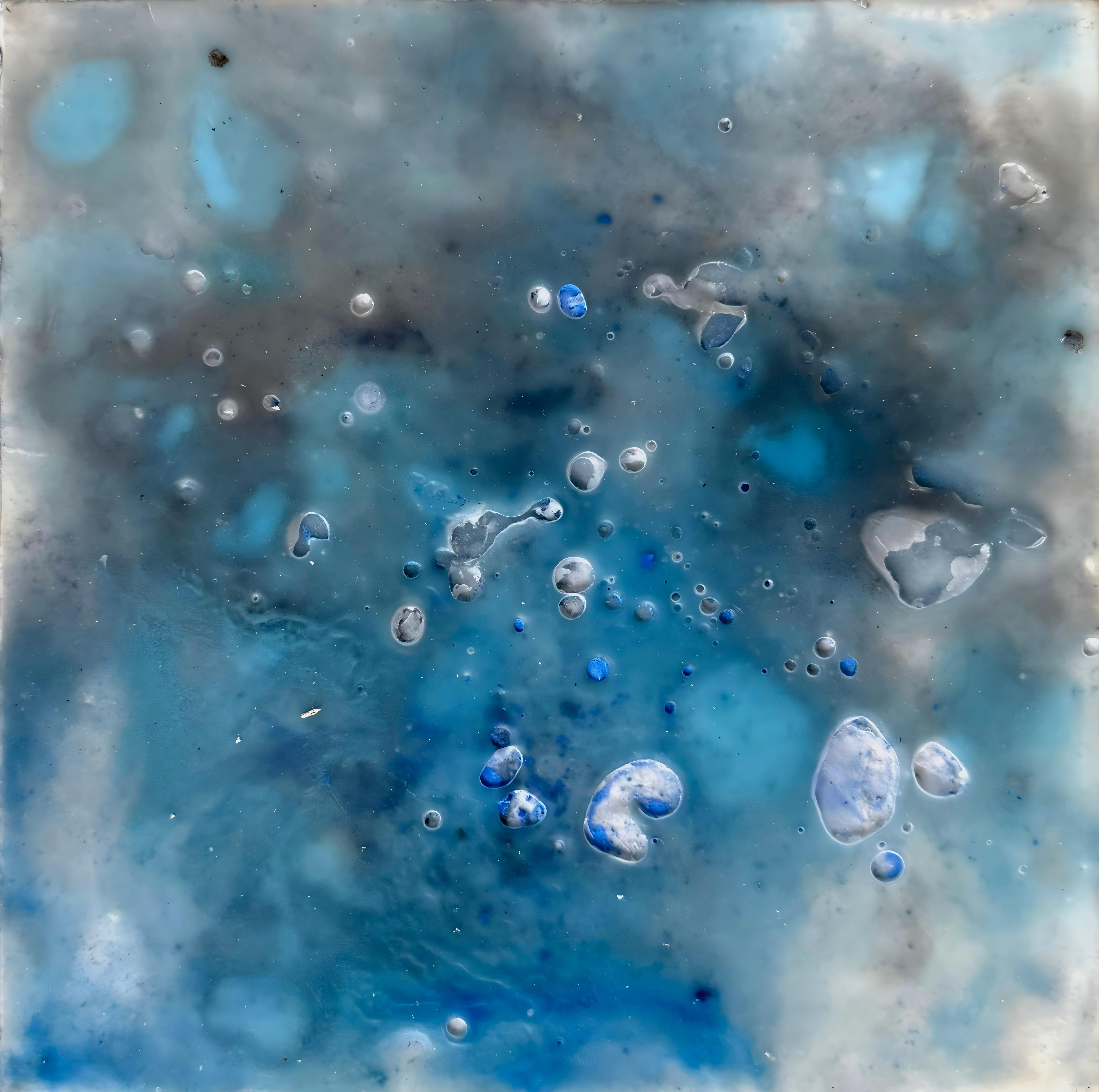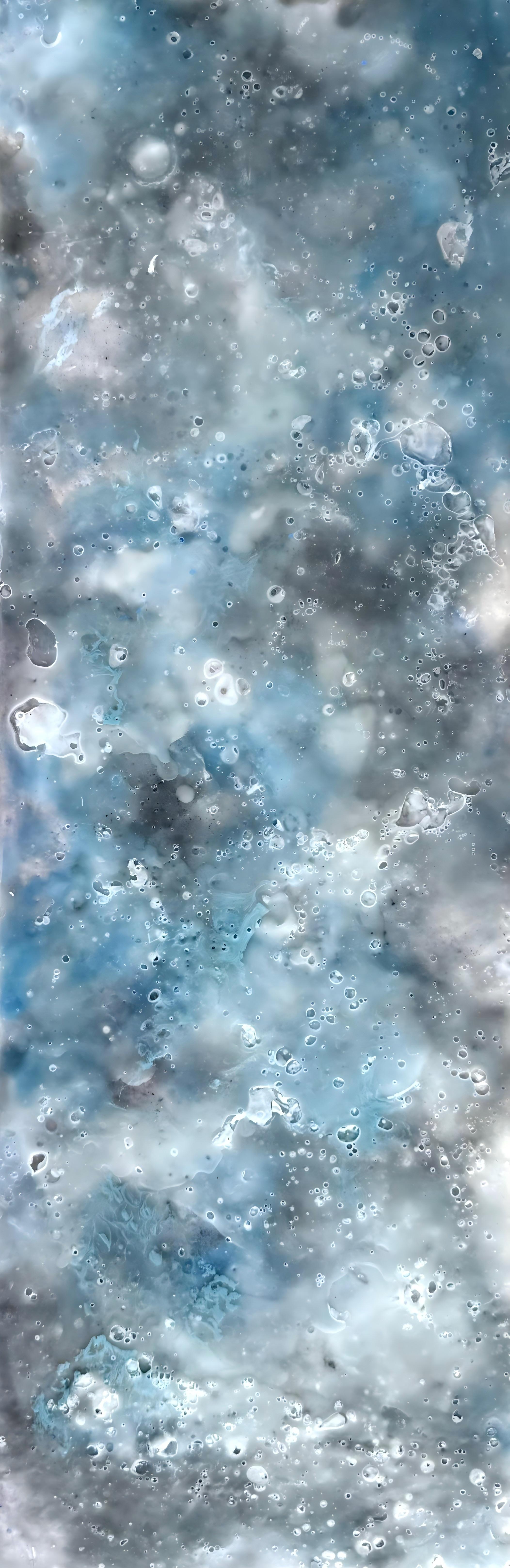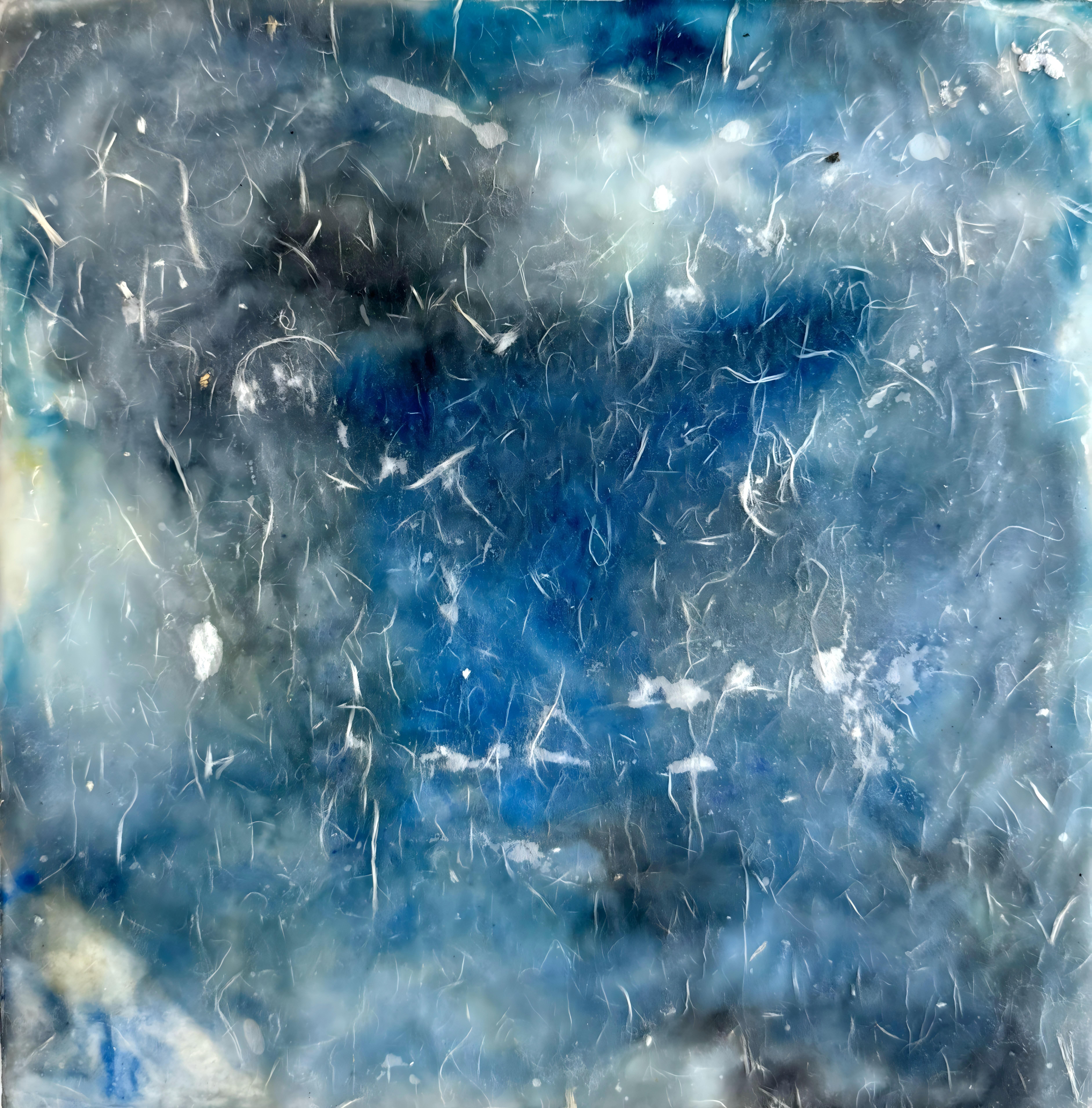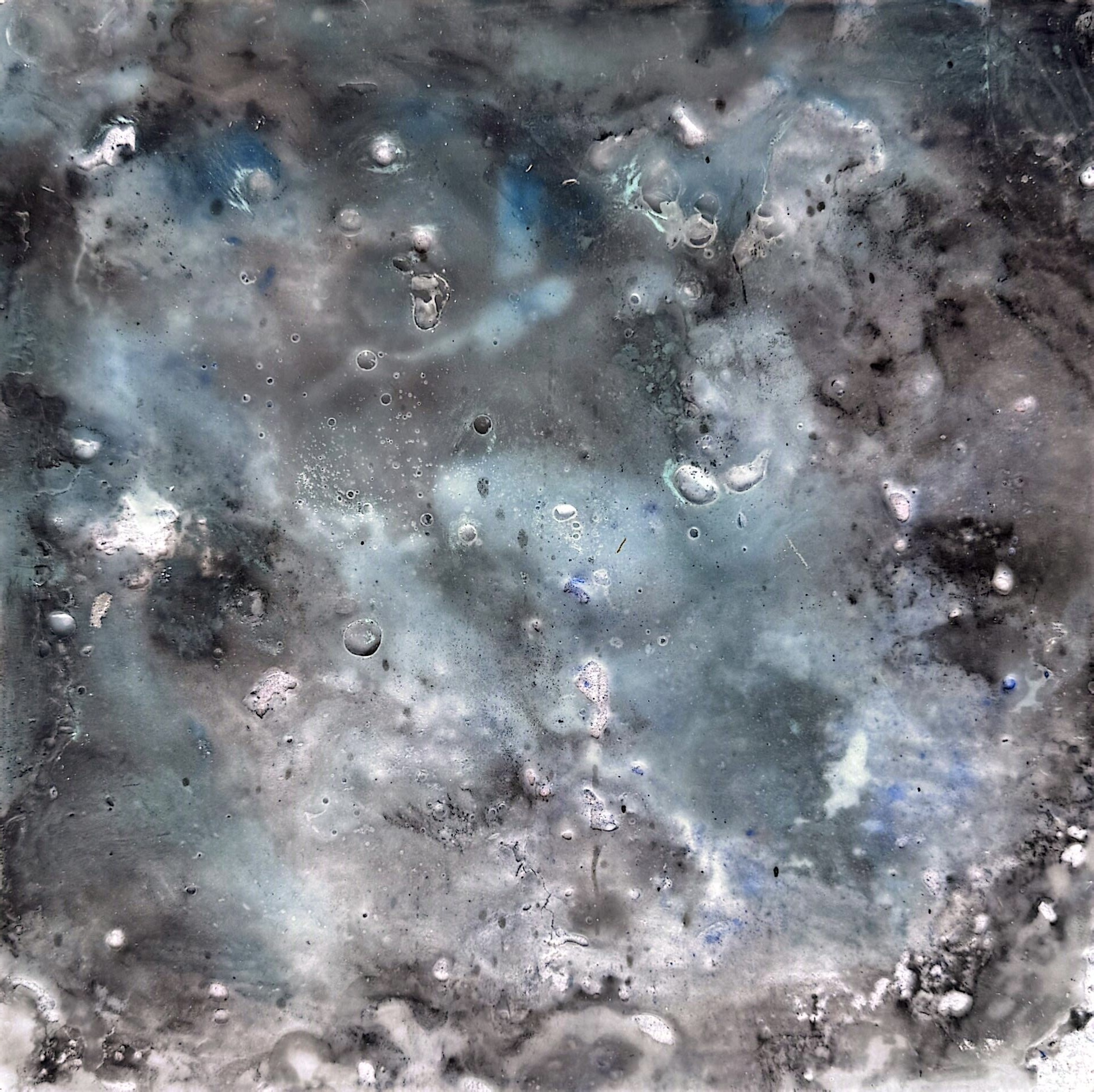 作品设计思路简述 (300字左右): 月亮自古以来便是人类情感与文化的多元载体,它于神话、诗歌、科学以及日常生活中不断衍生出新的意义。本作品以月亮这一跨越文化与时代的意象为核心,借助综合材料绘画探寻情绪、自然与科技之间的全新关联。在粤港澳大湾区这样开放的环境里,潮汐的节奏、月亮的亮光与青年的情绪紧密交织。创作时运用综合材料的模糊特质与叠加效果,结合金属框架营造半立体的三维视觉结构,使画面在展现月亮这一共同记忆的同时,也象征着科技与艺术的相互依存、共同发展。希望让观者在观赏过程中自行解读图像的意义,而非进行直接的叙事性表达——正如湾区文化以多元、包容与碰撞为动力,让每一种创造力都能在其中蓬勃生长。