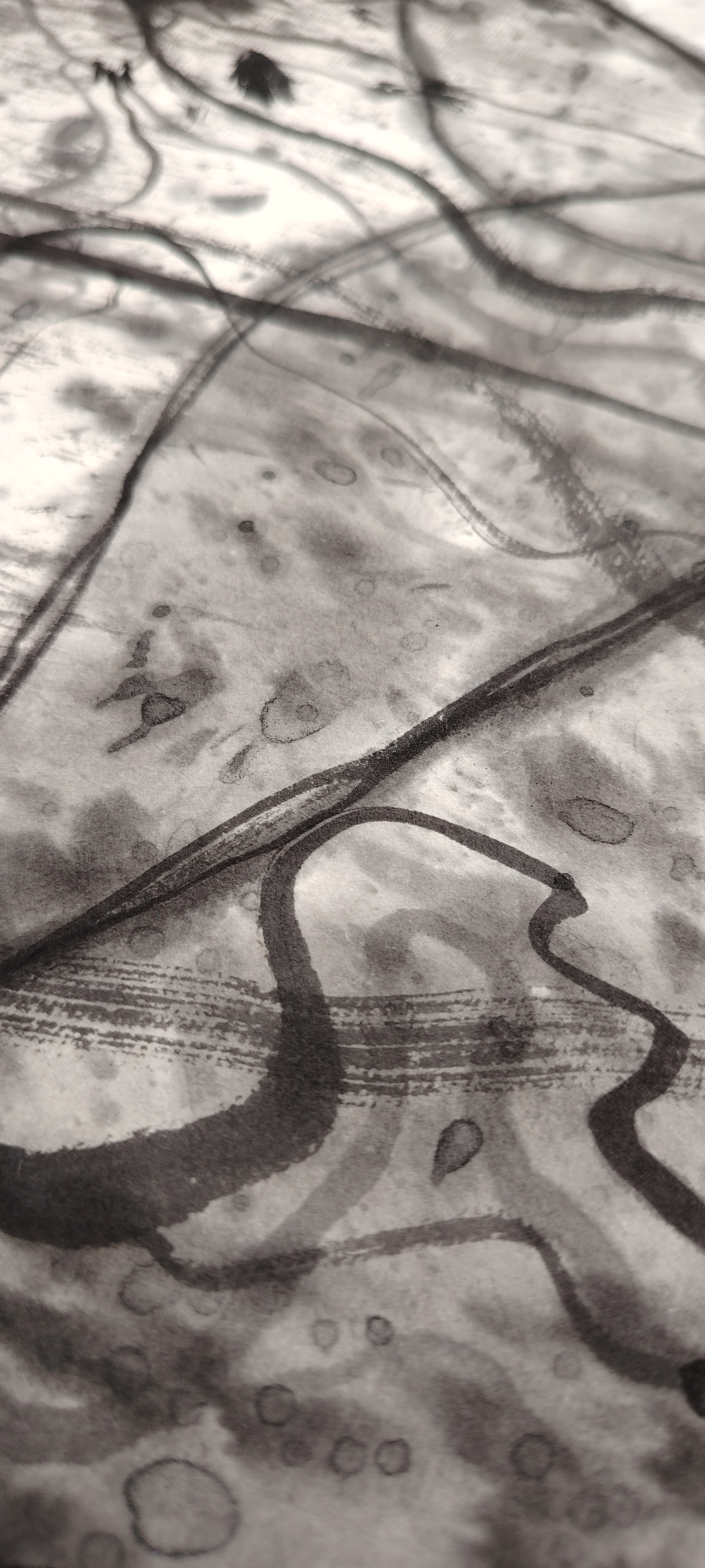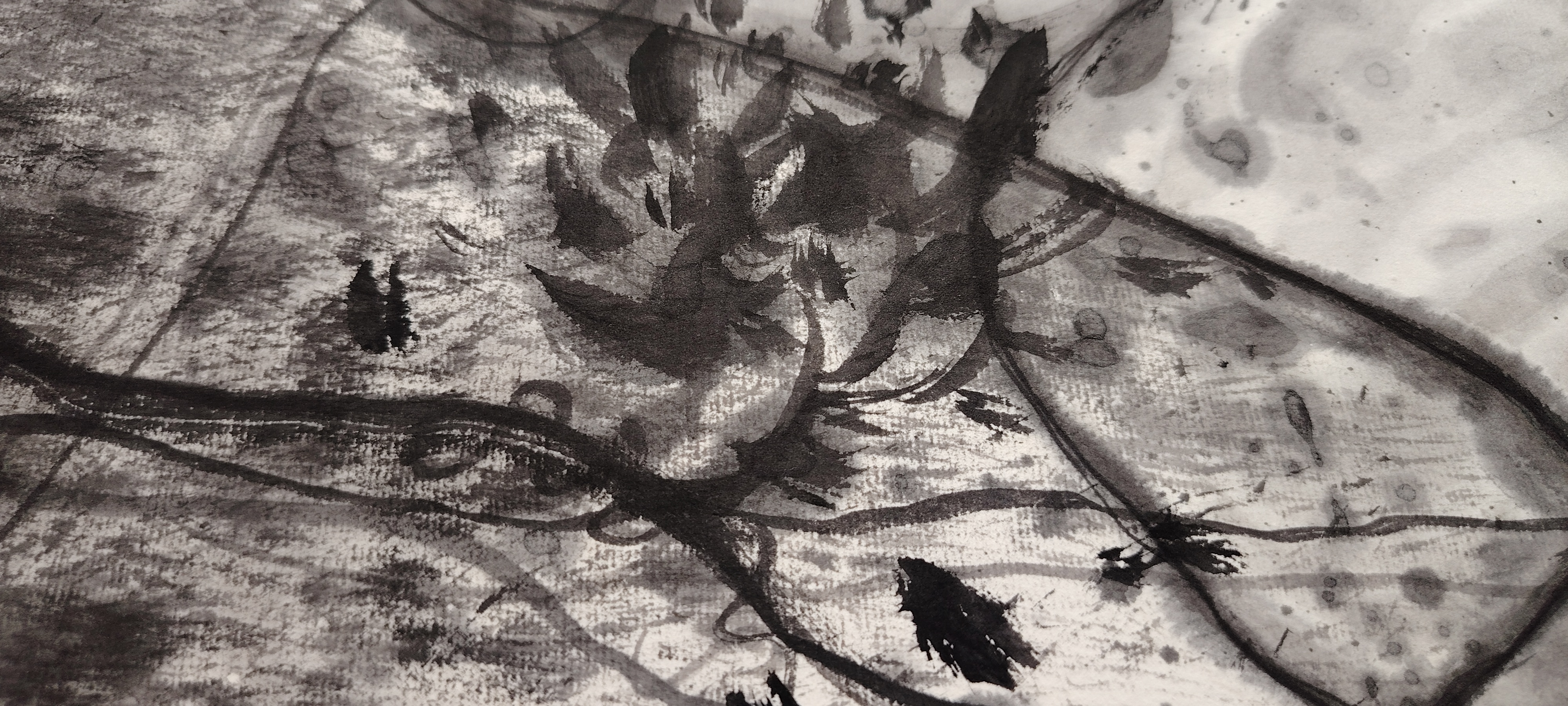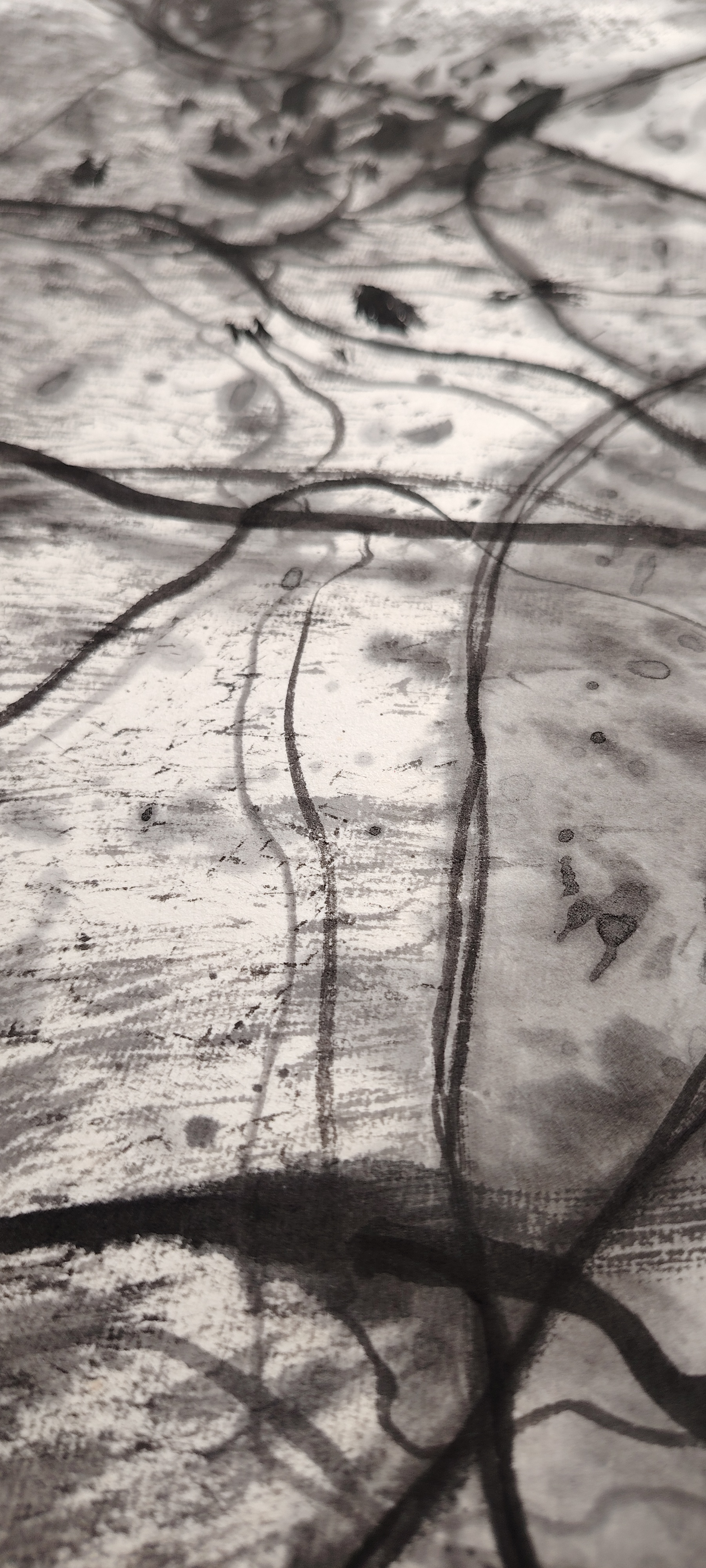 作品设计思路简述 (300字左右): 沐光:墨色里的光影诗行 这幅当代水墨以“沐光”为题,打破传统水墨的沉郁调性,将光影与墨韵揉成流动的诗。宣纸之上,淡墨铺陈出朦胧的底色,留白处化作穿透的曦光,清透而不灼目。 运笔的线条如松枝斜逸,墨色由浓转淡,叠染出枝叶间的光影交错——深墨为阴,浅墨为阳,焦墨点染的叶尖凝着细碎光斑,似晨露折射晨光。 没有具象的日出图景,却以墨色的层次与虚实,勾勒出光的轨迹与温度。干笔皴擦的画面透着苍劲,却被淡墨光影晕染出柔和质感;水墨交融处,似有微风拂过,光与影在纸面流转。整幅作品以当代水墨的写意手法,将“沐光”的静谧与灵动具象化,既保留了传统水墨的笔墨意境,又融入了现代审美对光影的细腻感知,让人在墨色氤氲中,感受到晨光拂面的温润与生机。