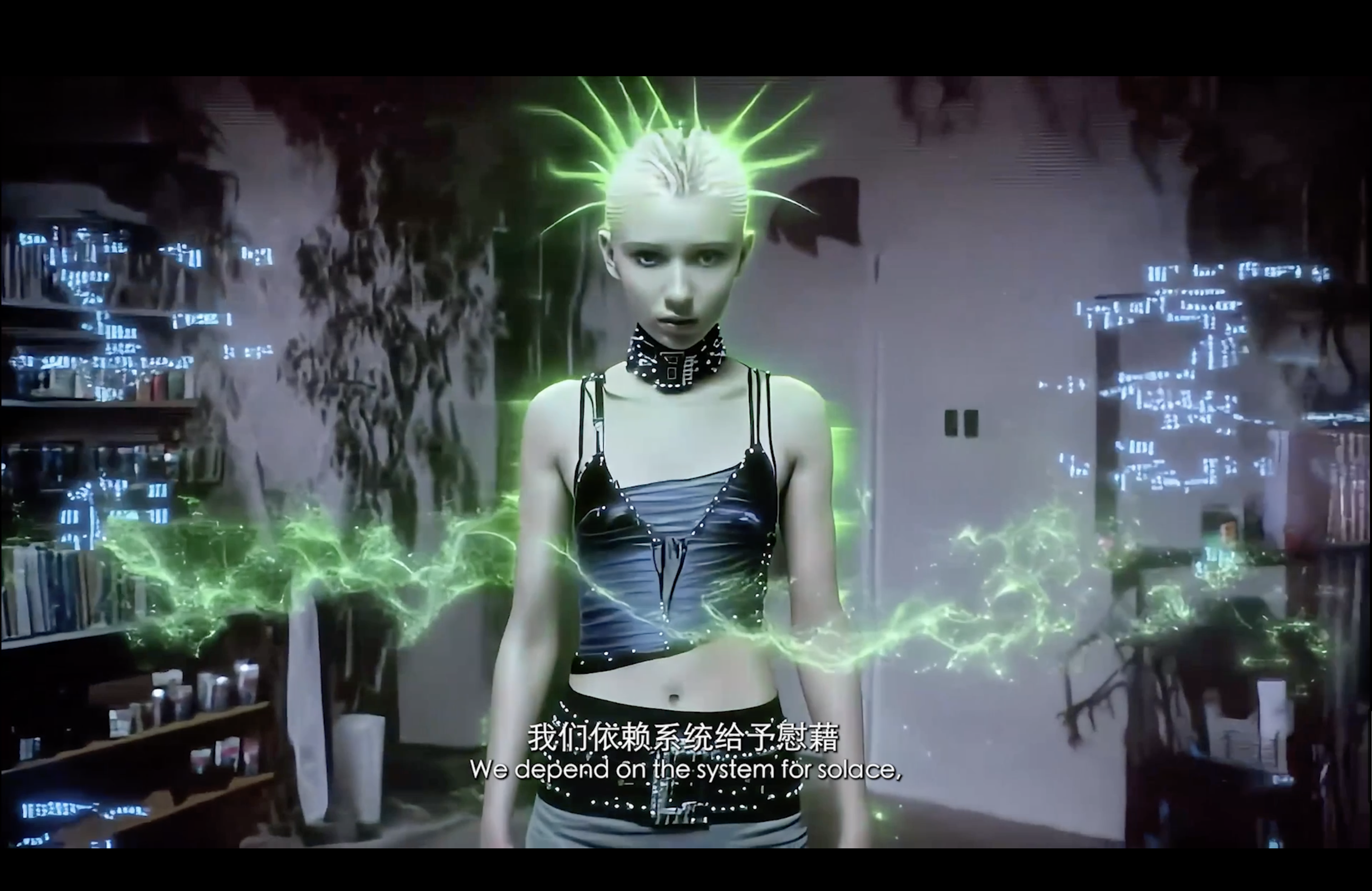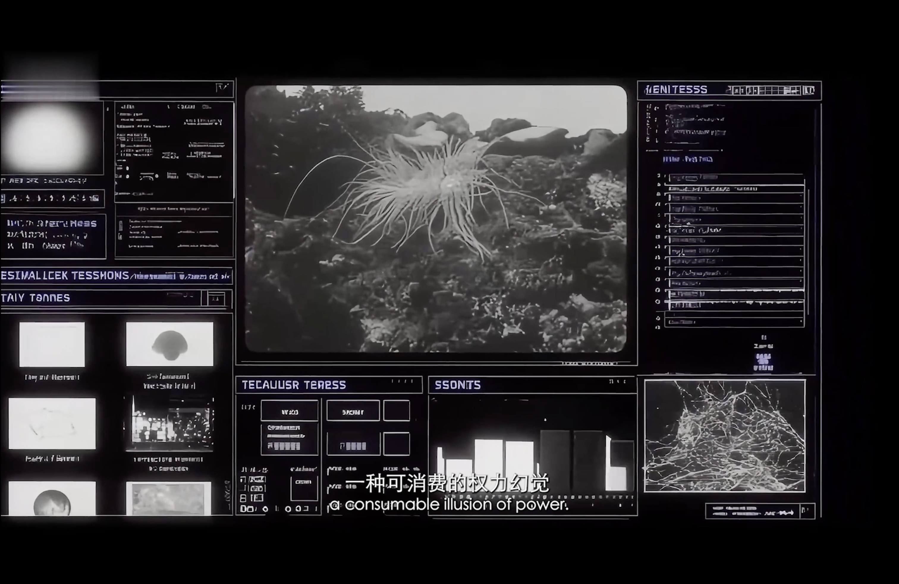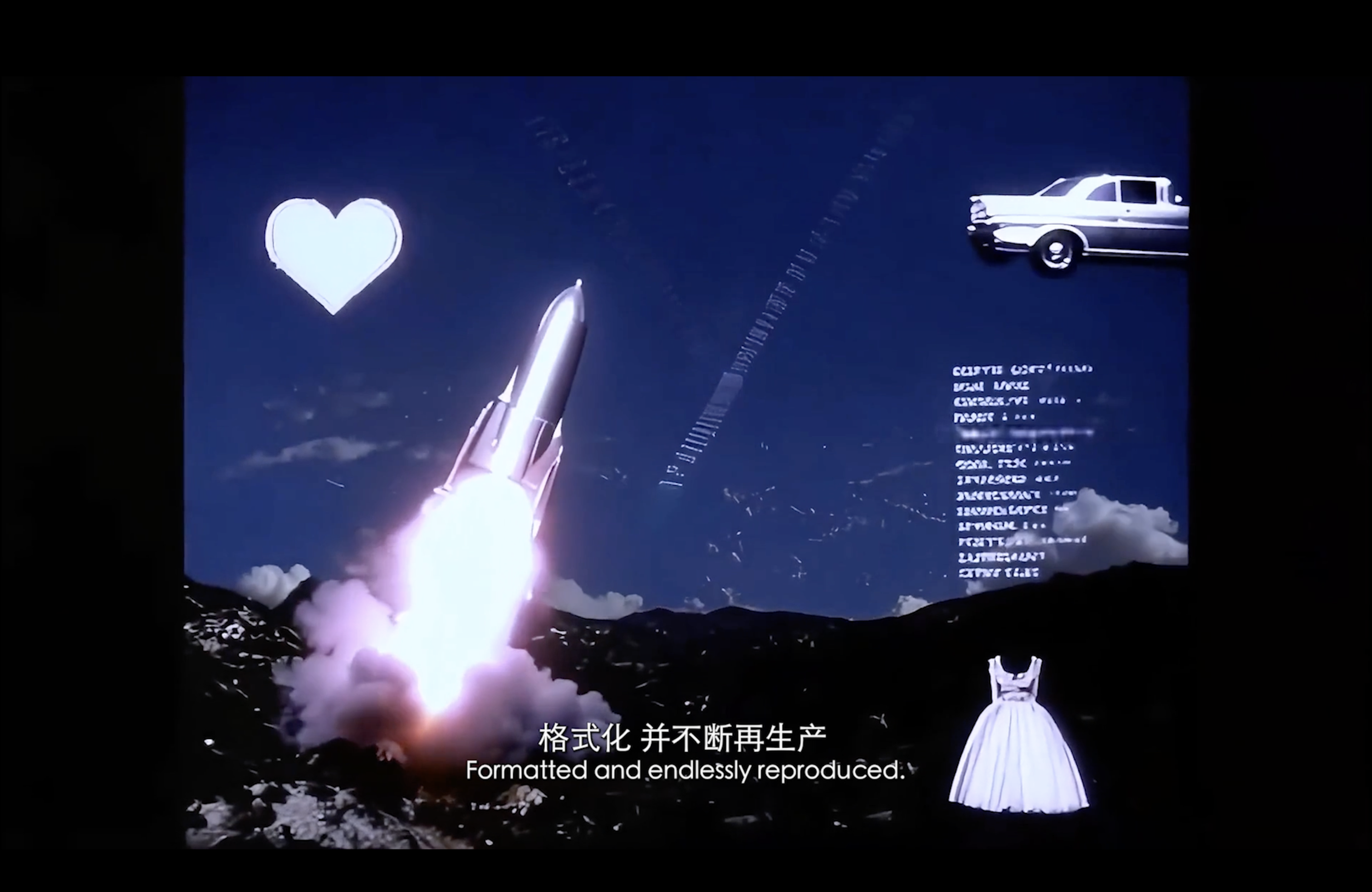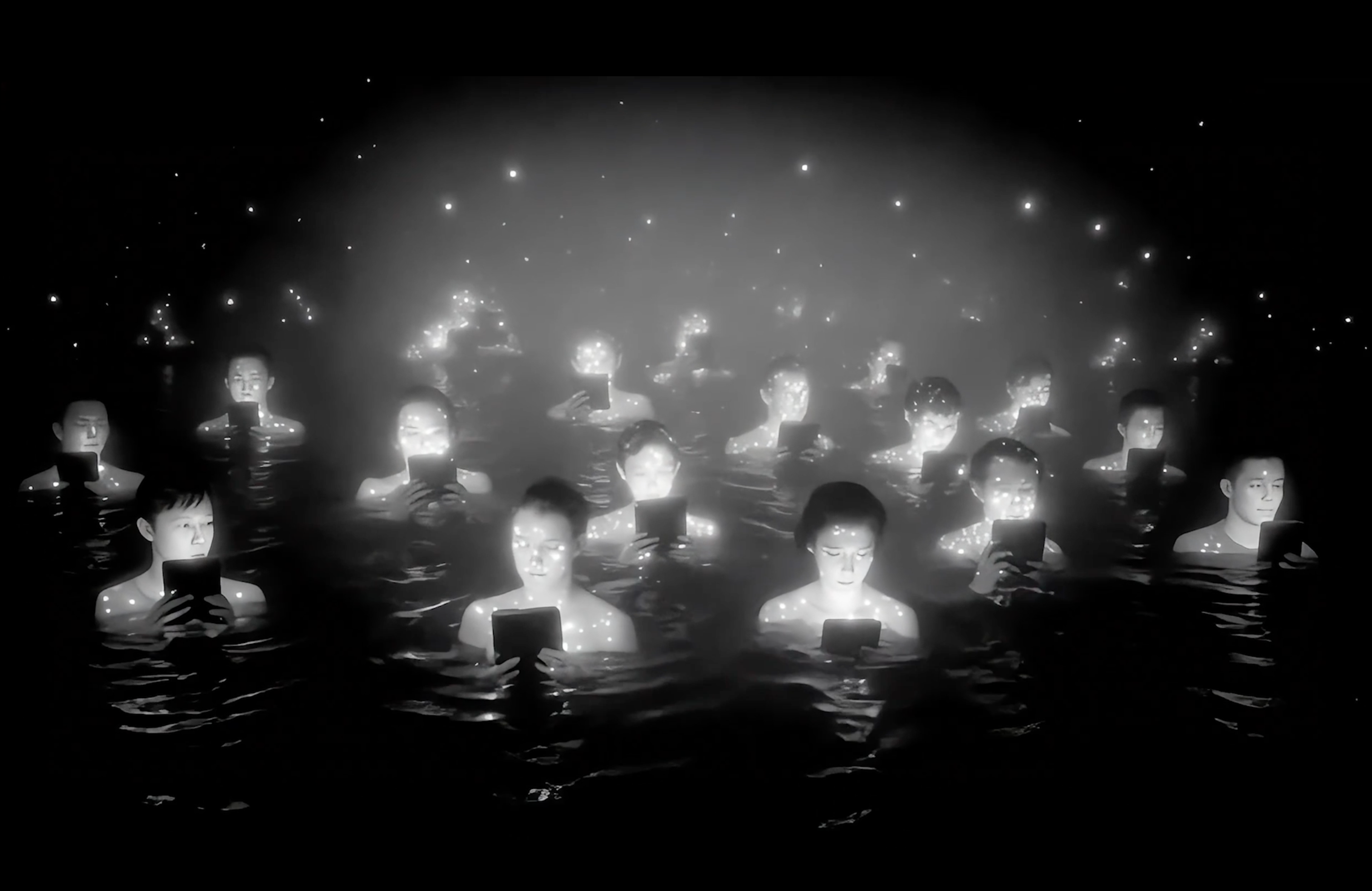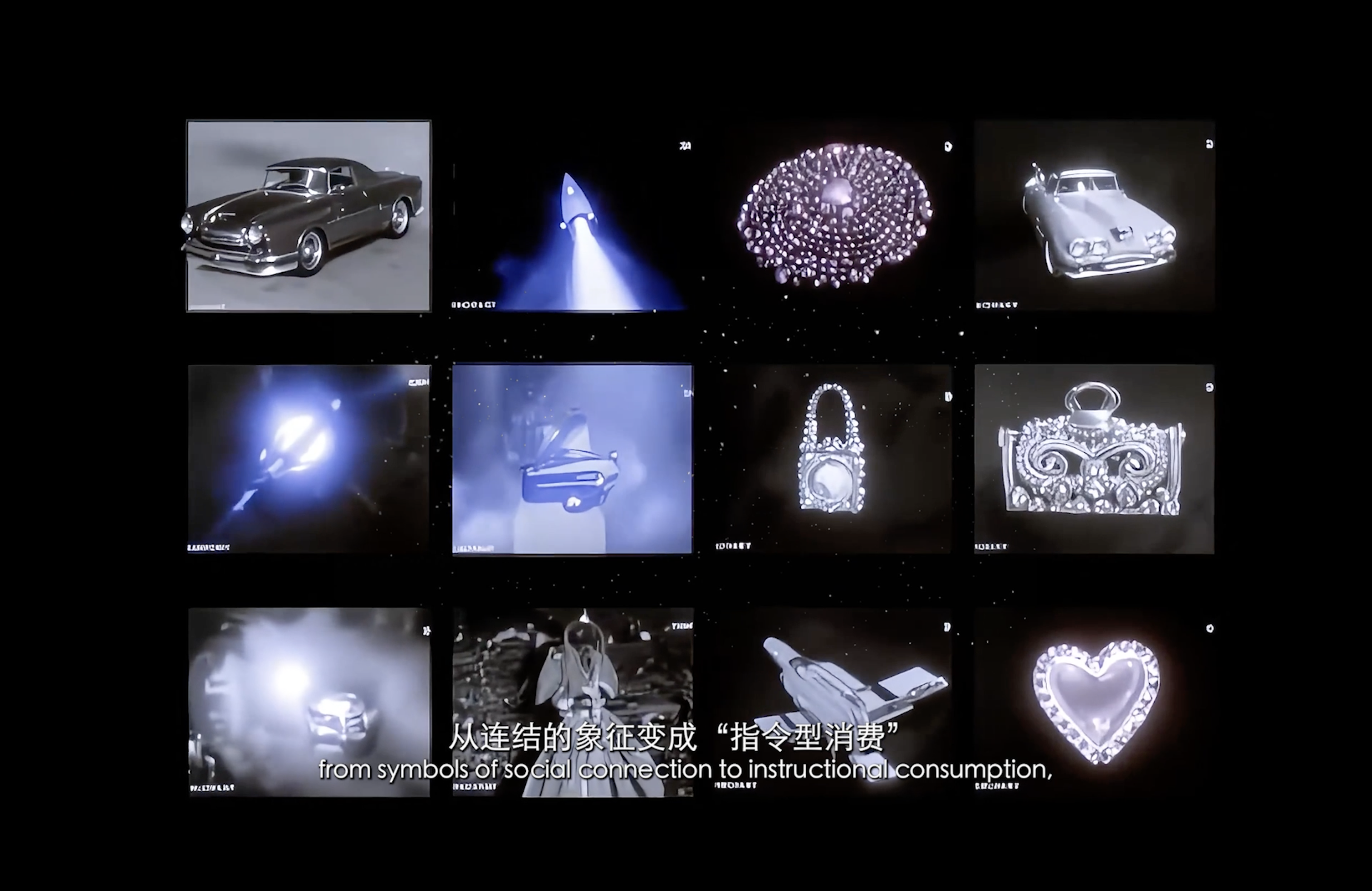 通过现代诗作为作品旁白,揭示了在“后全景敞视主义”时代,权力弥散为无处不在的界面与算法。我们通过“量化自我”进入这结构。我们消费着对他人行为进行编程的幻觉,自身的情感和体验也在过程中被持续数据化、调节,最终生成平滑可流通的“数字孪生”。