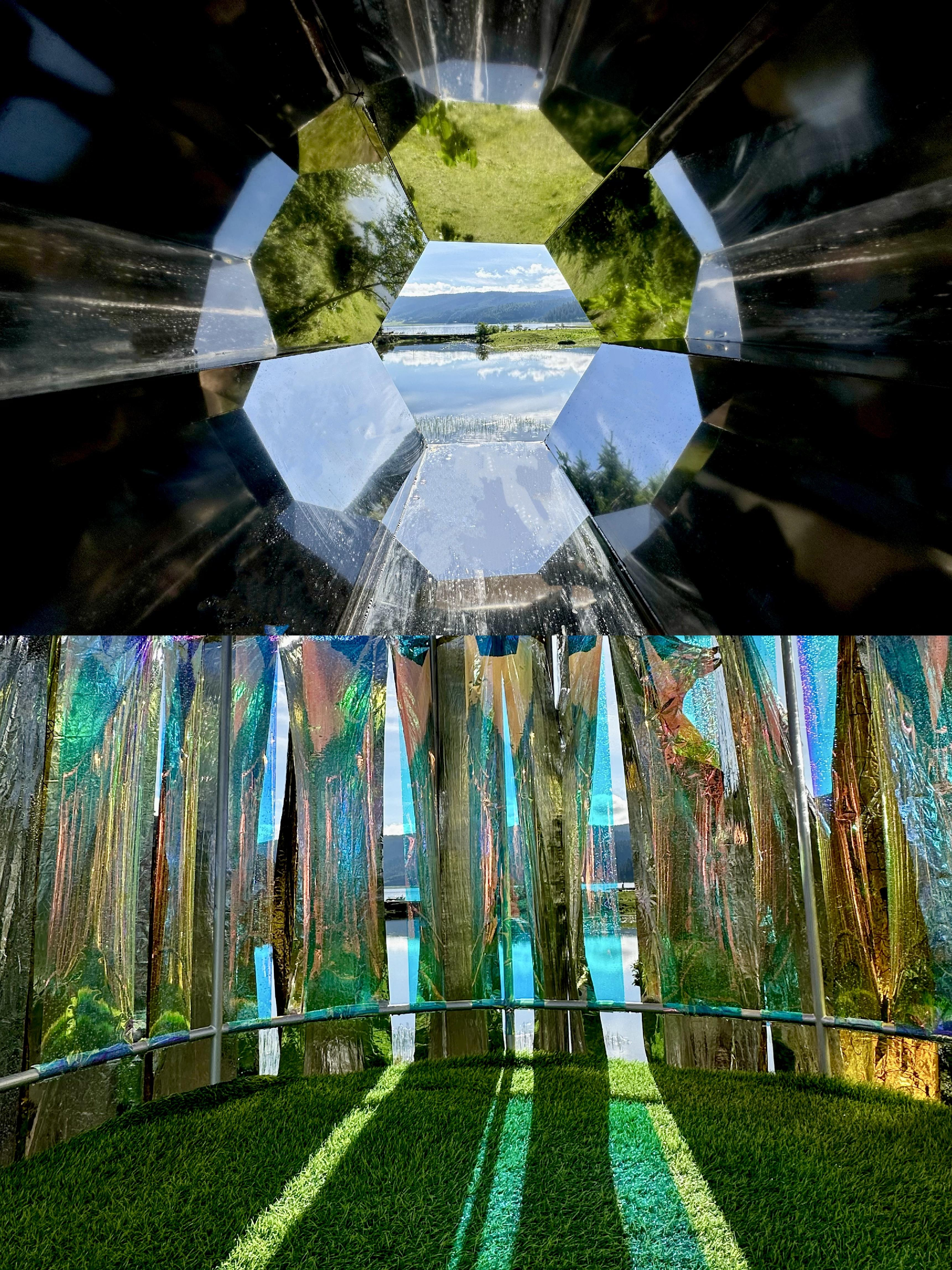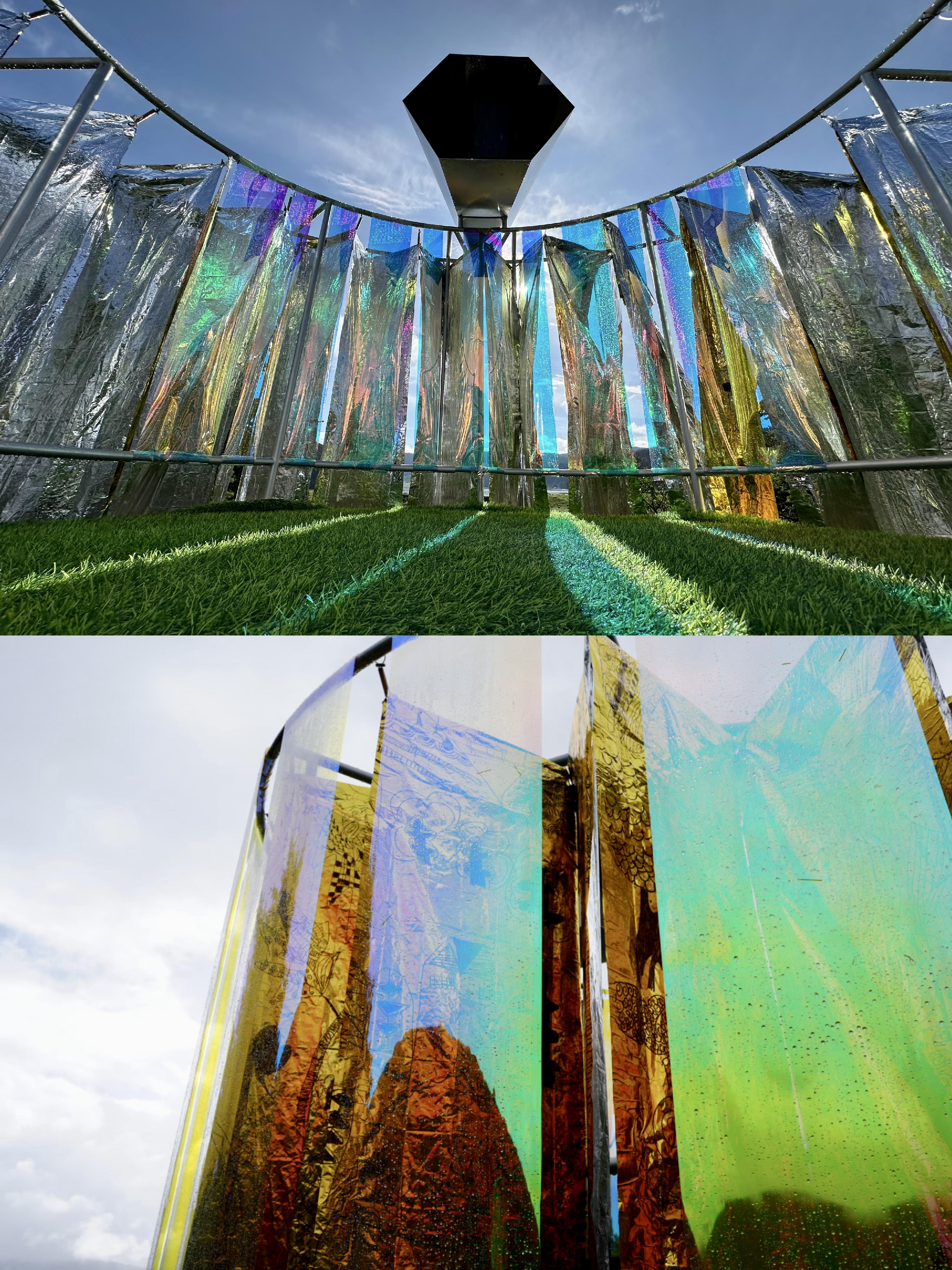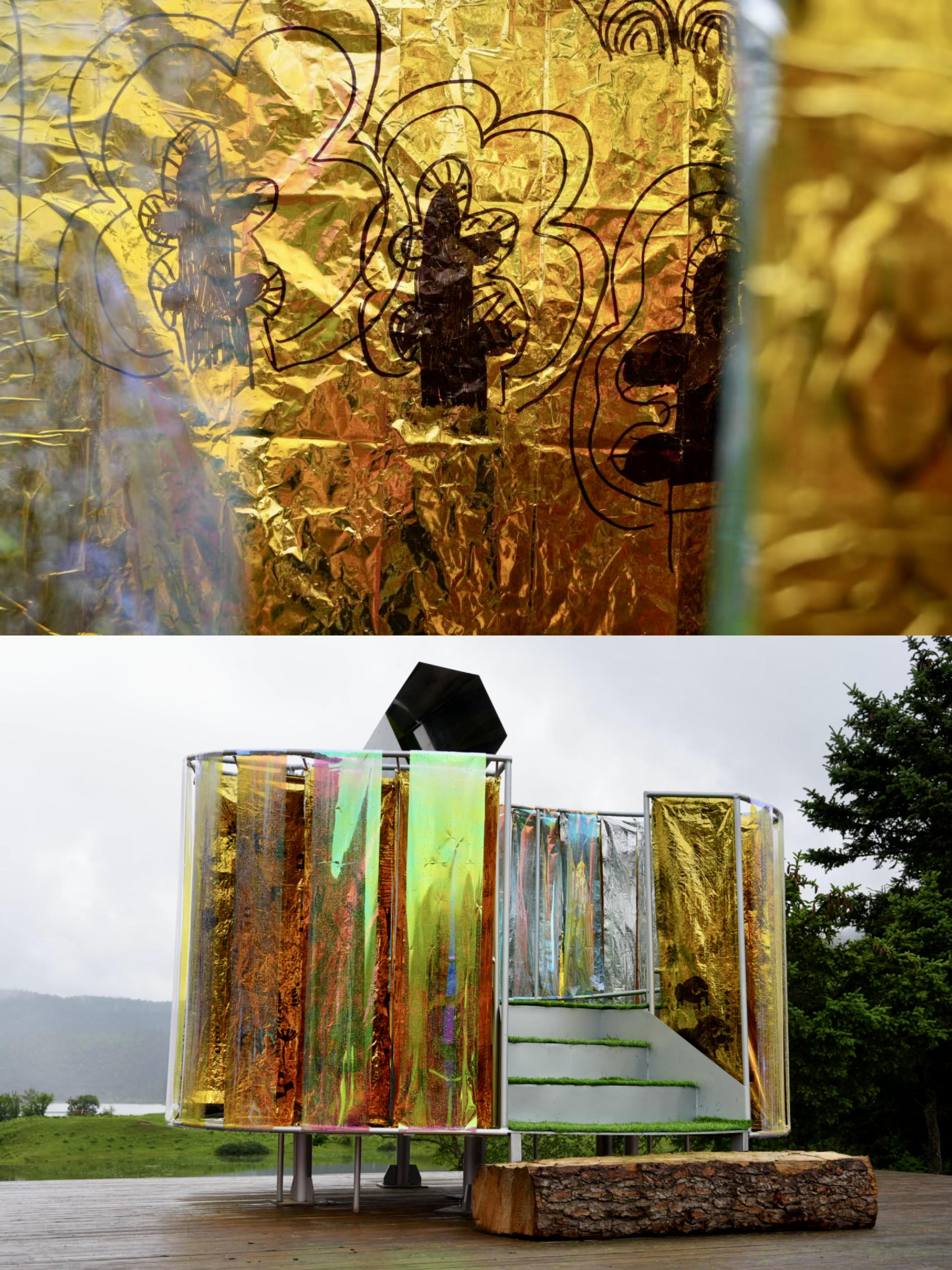 绘制的雪山、日、月和极地动物,成为装置的视觉核心。当阳光穿透这些画作,投射出变幻的金色光影时,观众将看到:存档点存下的是此刻我们对当