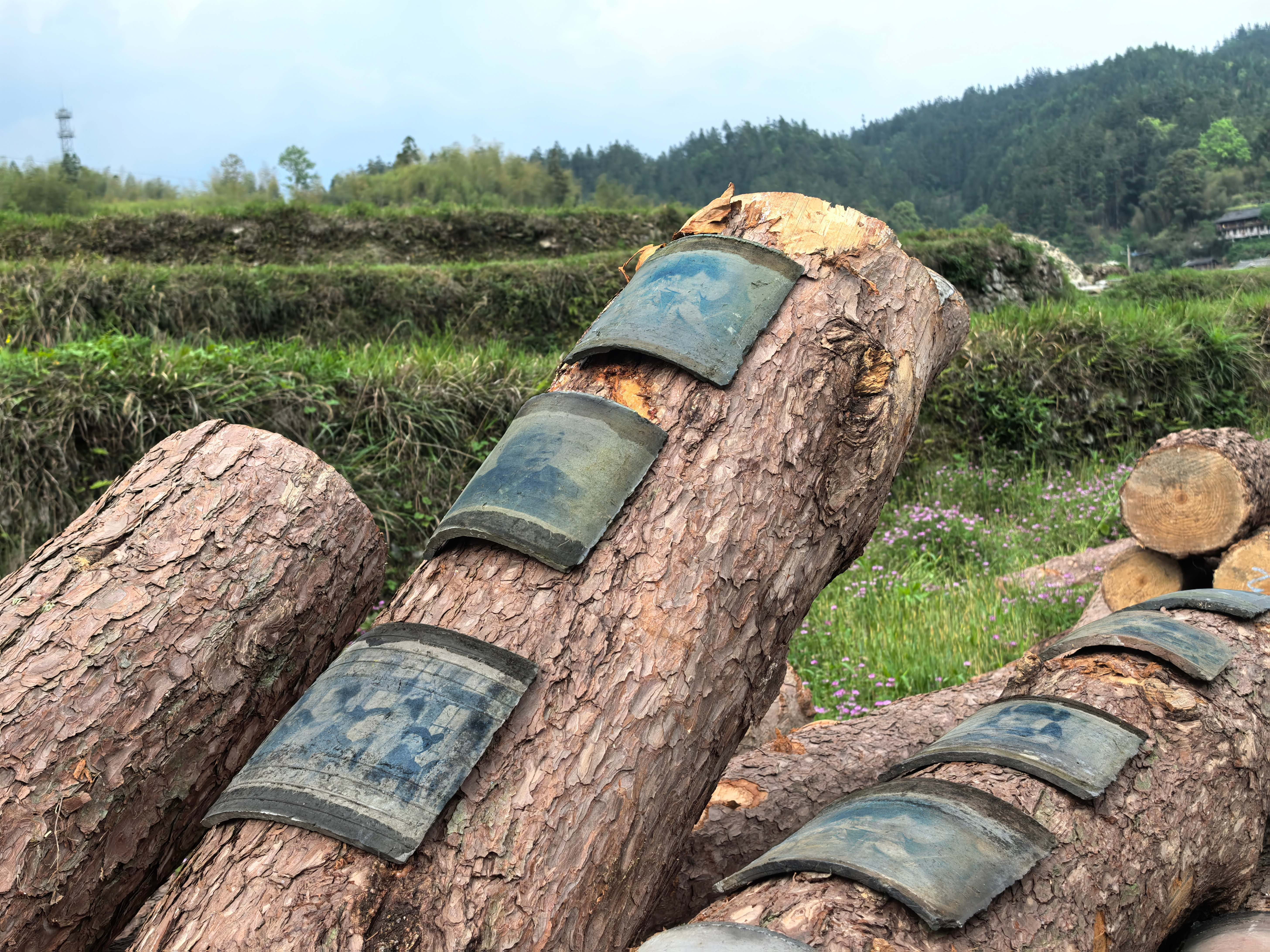 青瓦作为侗寨建造中不可或缺的材料,承载着地扪人日常生活的痕迹,每一片瓦背后皆隐藏着家族与岁月的叙事。艺术家通过采集并转化这一常见却深具文化意涵的媒介,将地方记忆转化为可触可见的物质档案。